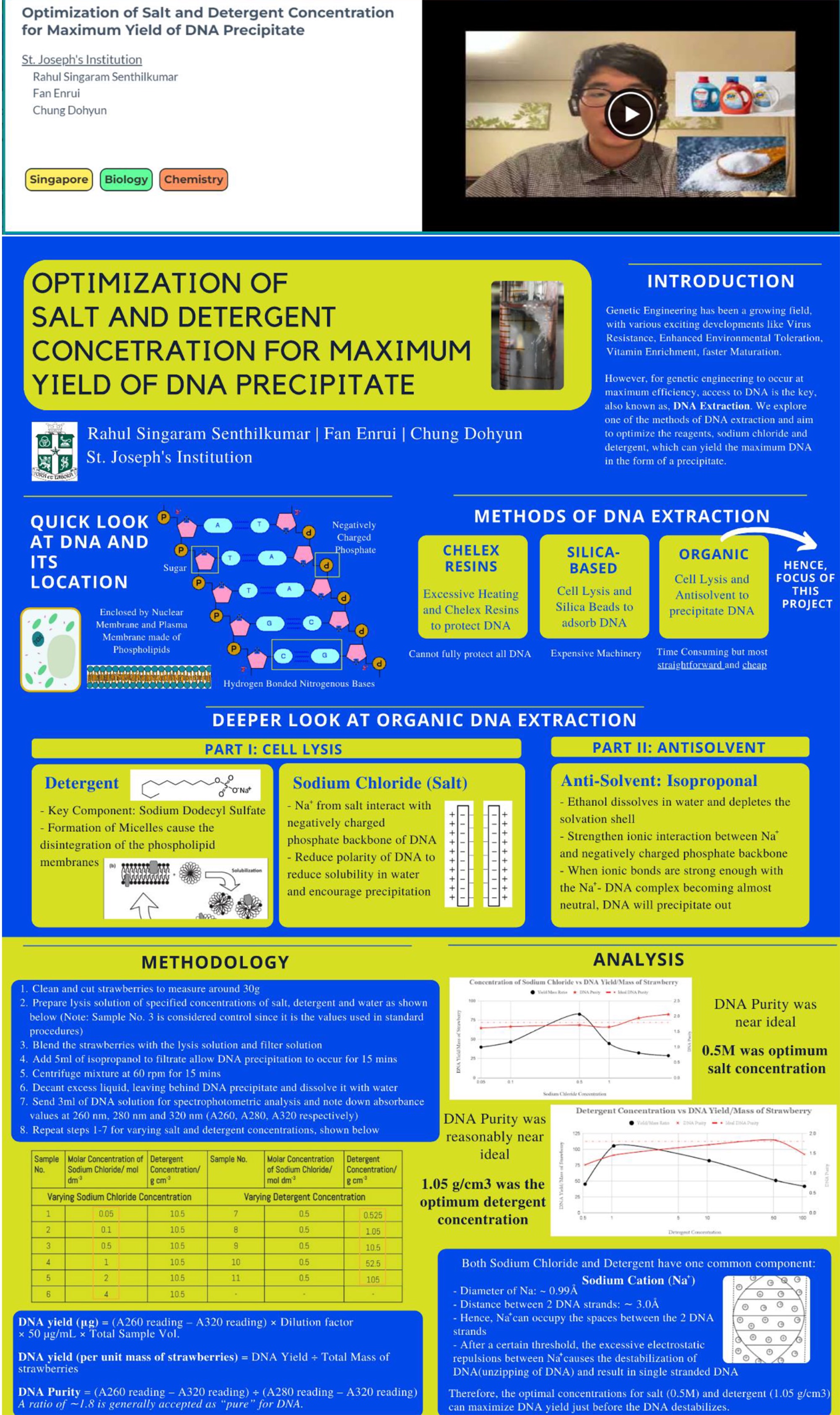 A highlight of their time at the ISYF was the Team Project Challenge, which involves a role-play scenario of a fictitious island nation plagued by a variety of natural and man-made disasters. The assigned goal of the students was to work in teams to tackle the issues with innovative solutions found through scientific research and 3D modelling. While the task was challenging, the teams found great pleasure in bonding with each other during their task. The Project Exhibition was another segment where they shared and exchanged knowledge about various science projects with peers from other countries, and the SJI trio was eager to present their project on extracting DNA.